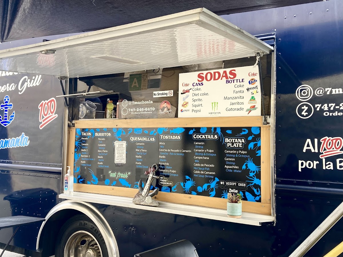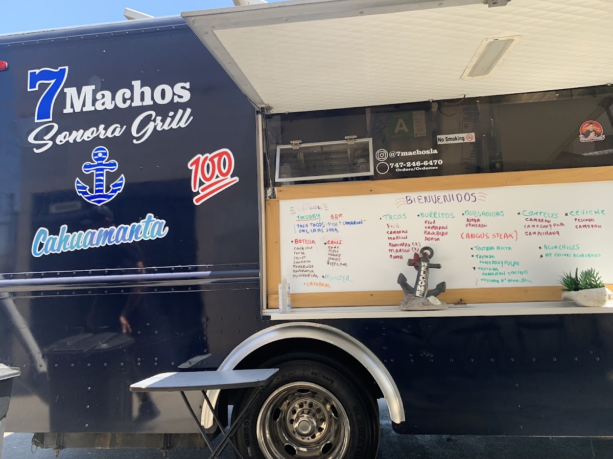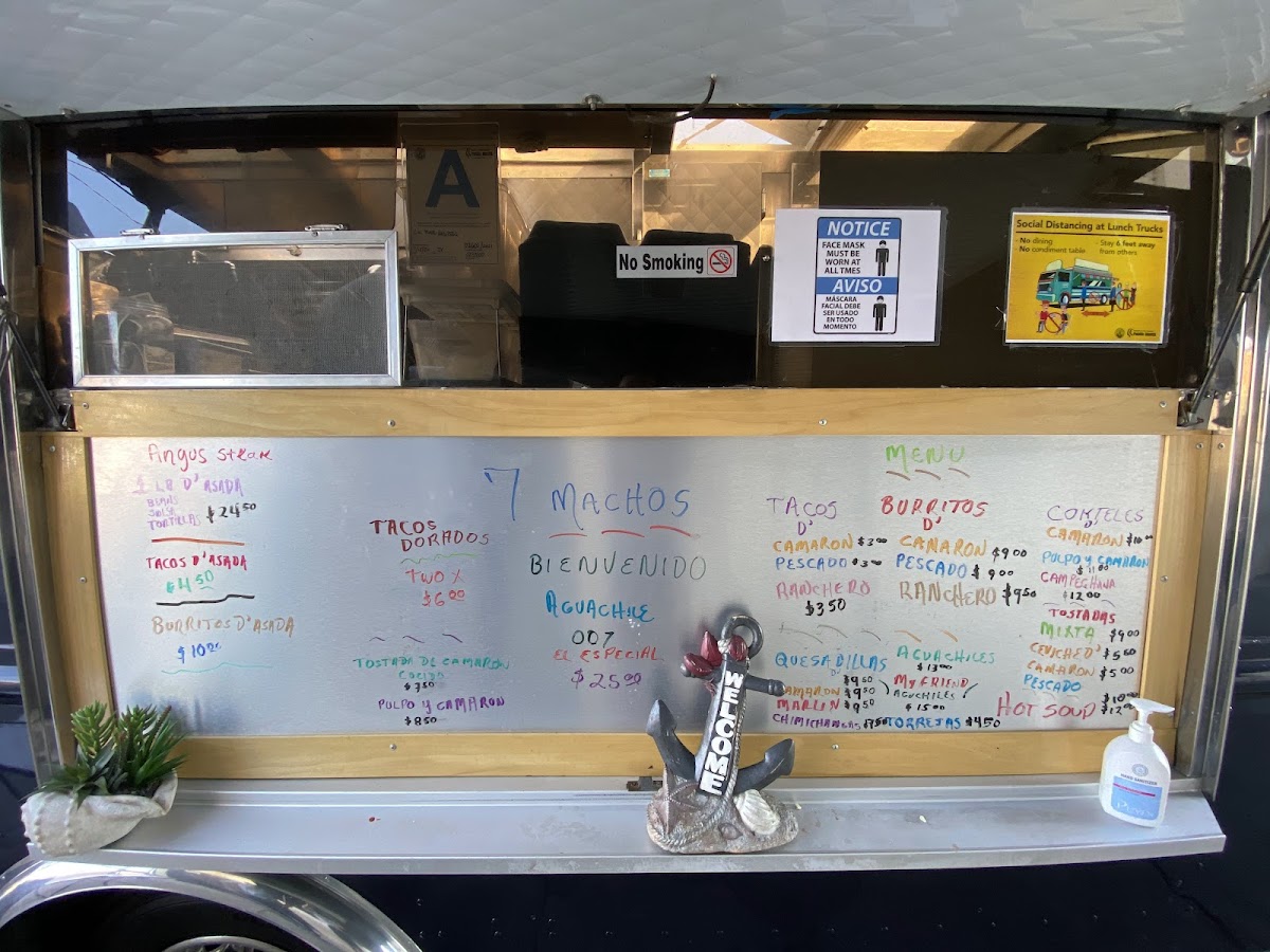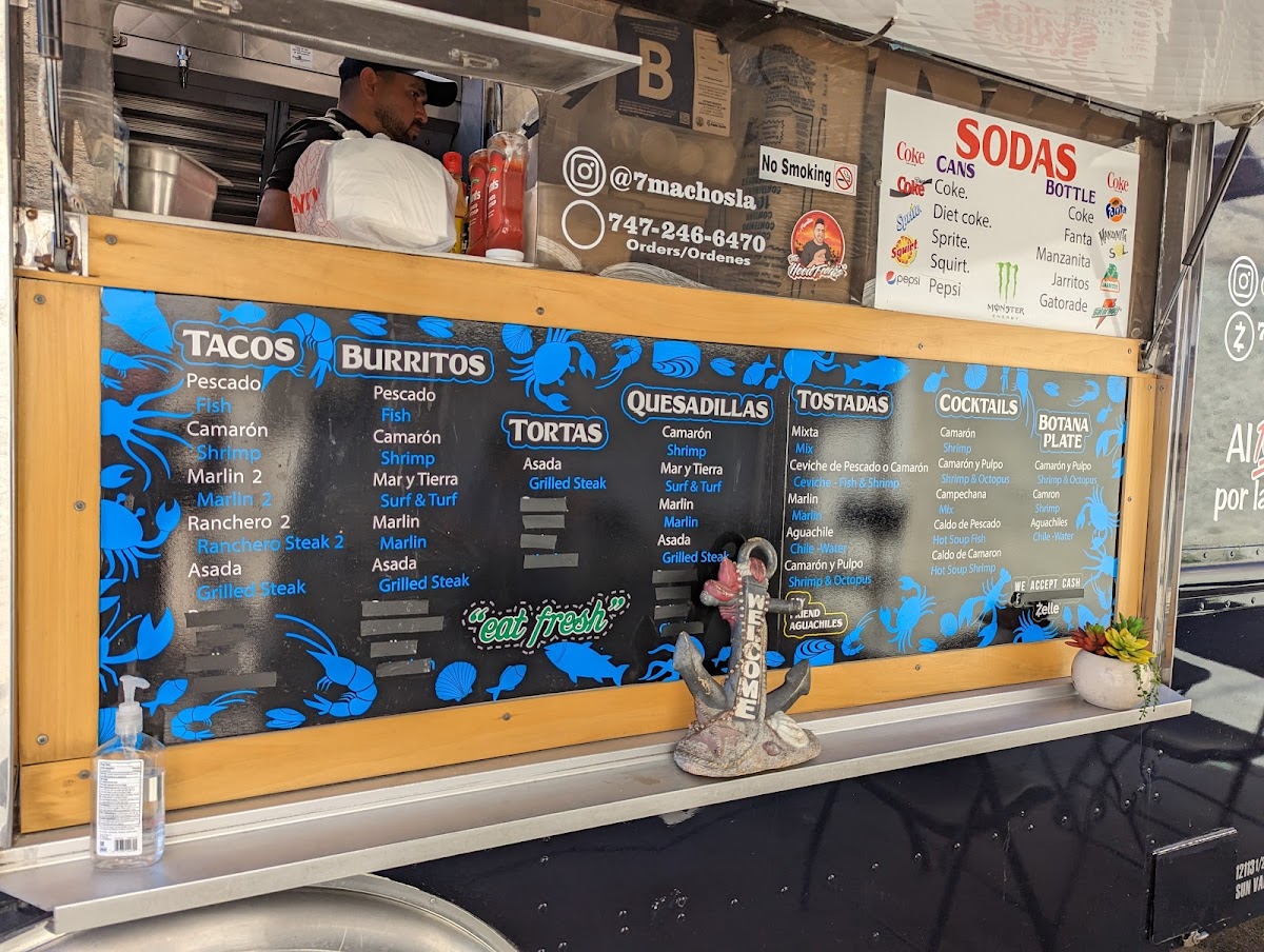 The menu at 7 Machos Mariscos offers a delightful variety of seafood and grilled dishes. For tacos, guests can choose from flavorful options such as Pescado, Camarón, Marlin Ranchero, and Ranchero Steak. The tacos are a perfect blend of fresh ingredients and traditional flavors. If you're in the mood for a refreshing cocktail, try the Camarón, Camarón Y Pulpo, or Campechana Caldo De Pescado, each offering a distinct taste of the sea. For those seeking a hearty meal, the Mar Y Tierra and Grilled Steak are excellent choices, combining surf and turf in one satisfying dish. Additionally, the Surf & Turf Aguachile and Mixta present flavorful combinations of marinated seafood and grilled meats. With a wide range of options, 7 Machos Mariscos caters to seafood lovers and those craving a flavorful steak, making it a go-to spot for any craving.
